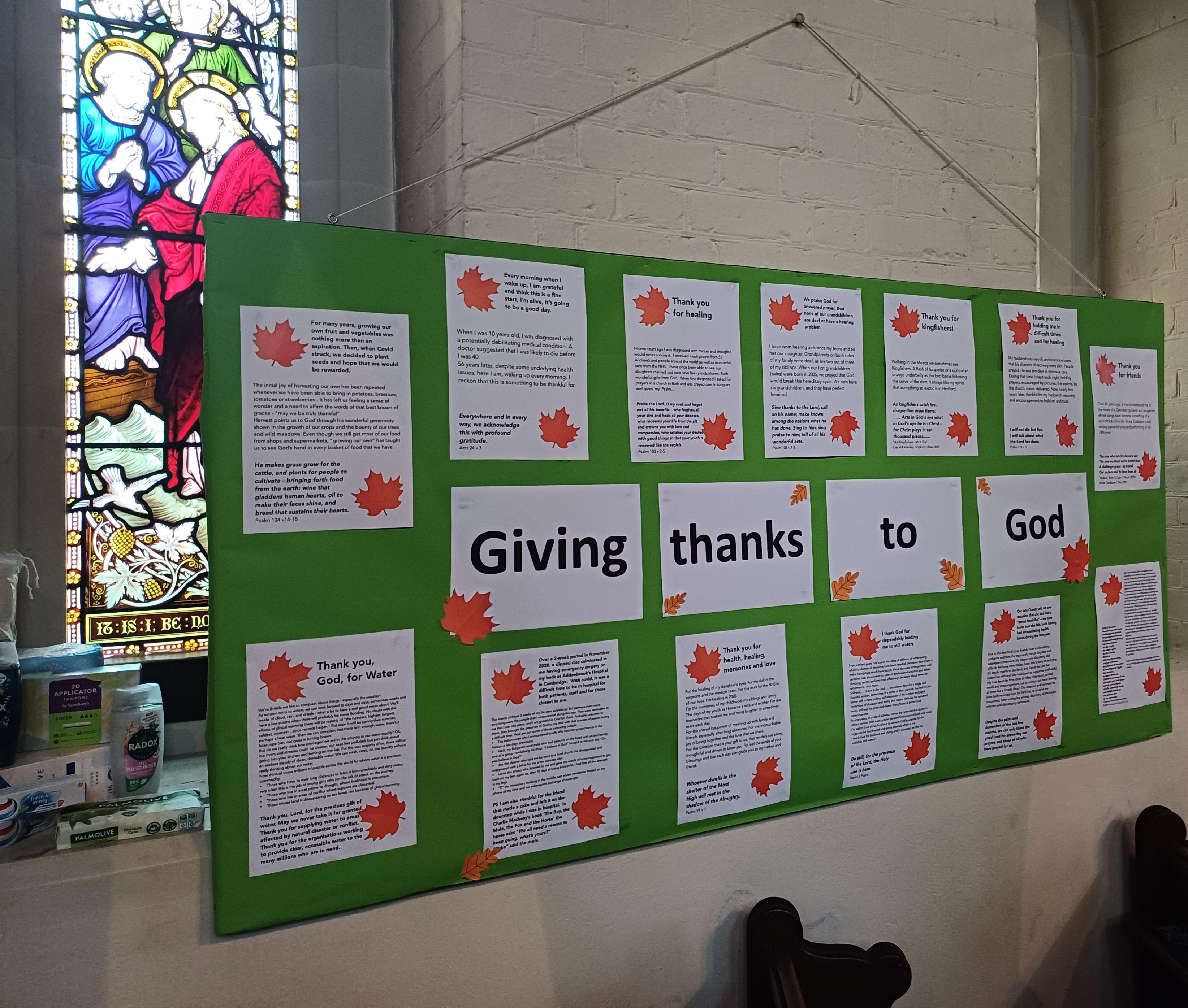The weekend’s theme was “gratitude” - something always at the heart of Harvest Festival. To capture the wider application of the word, a wonderful display showed a range of responses relating, among others, to thankfulness for food, nature, for our environment and for friends. Original writing and Bible verses thanked God for his blessings.